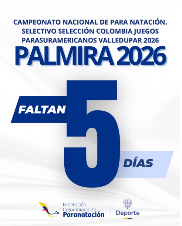 Del 5 al 7 de marzo, Palmira será el escenario del Campeonato Nacional de Para Natación 2026, evento selectivo a los Juegos Parasuramericanos Valledupar 2026 🇨🇴 Cada brazada cuenta. Cada segundo define. La cuenta regresiva ya comenzó.
